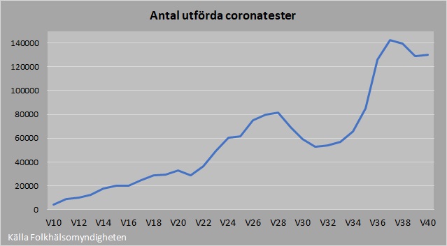 Då svarar många att antalet tester också har ökat och då blir det också fler som testas positivt. Men samtidigt visar antalet tester på hur dåliga Sverige var på att testa tidigare i år. Fler kanske kommer ihåg hur socialminister Lena Hallengren i april sa att det skulle utföras 100 000 tester per vecka redan i maj. Det dröjde till slutet av augusti innan detta uppnåddes.