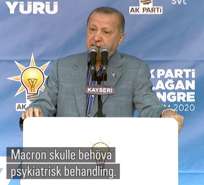 Idag ansåg Erdogan att Macron behövde en psykiatrisk behandling på grund av hans kamp mot islamister i Frankrike.