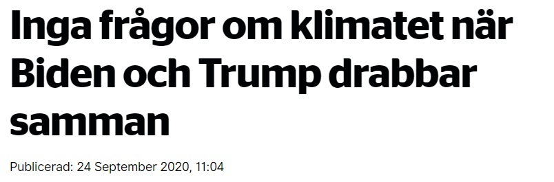 Jag lyssnade idag på det senaste programmet av Sveriges Radios Klotet. Det hade rubriken ”Ödesval för klimatet”. Det handlade givetvis om presidentvalet i USA. Biden framställdes som den gode och Trump som den onde. En lång rad av röster fick ge uttryck för sitt stöd för Biden både journalister och forskare i Sverige och från USA. Inte en enda röst gav sitt stöd för Donald Trump!