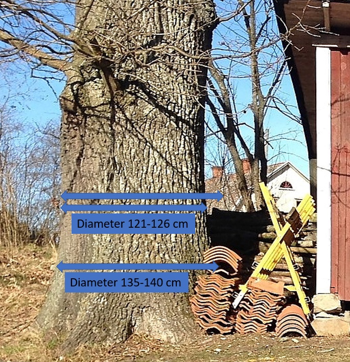 Var och en får ju göra sin egen bedömning om trädets diameter var enligt den mätning som partikamraten Magnus Uhr utförde, på 98 cm eller om eken i själva verket var 115-125 cm enligt min uppskattning.