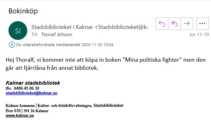 Jag är personligen fullständigt övertygad om att någon drar i trådarna i bakgrunden på Länsstyrelsen i Kalmar när det gäller min anmälan som avskrevs och min överklagan av beslutet. Jävssituationen består fortfarande på länsstyrelsen mellan Malin Almqvist och det socialdemokratiska kommunalrådet Johan Persson. Frågan är om det kommer förändras när Malin Almqvist slutar på Länsstyrelsen i Kalmar?