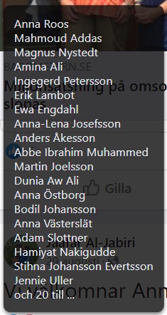 Jag undrar hur Lina Danlid Burke tolkar det uteblivna svaret från Jaafar al-Jabiri? Inte någon annan centerpolitiker har heller kommenterat Jaafar al-Jabiris inlägg på Facebook eller bett honom ta bort inlägget då det knappast kan sägas ingå i centerpartiets värdegrund. Det brukar annars vara många centerpolitiker som följer sin muslimska partikamrat. Här är ett exempel på några som följer Jaafar al-Jabiri.