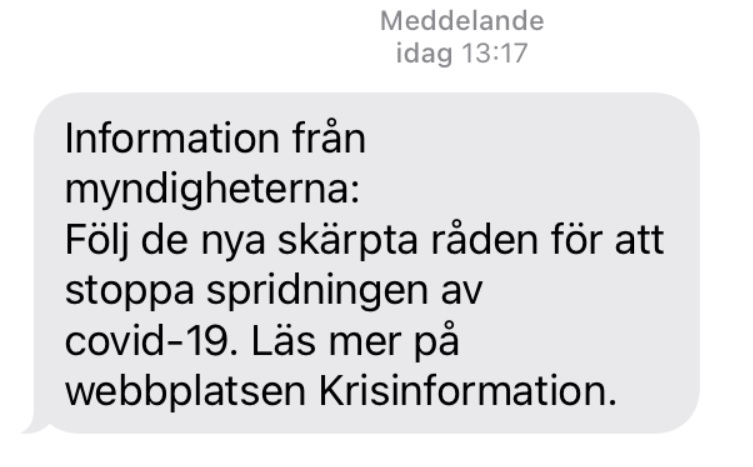 Jag trodde det var ett skämt när jag fick det SMS från myndigheterna Folkhälsomyndigheten och MSB.