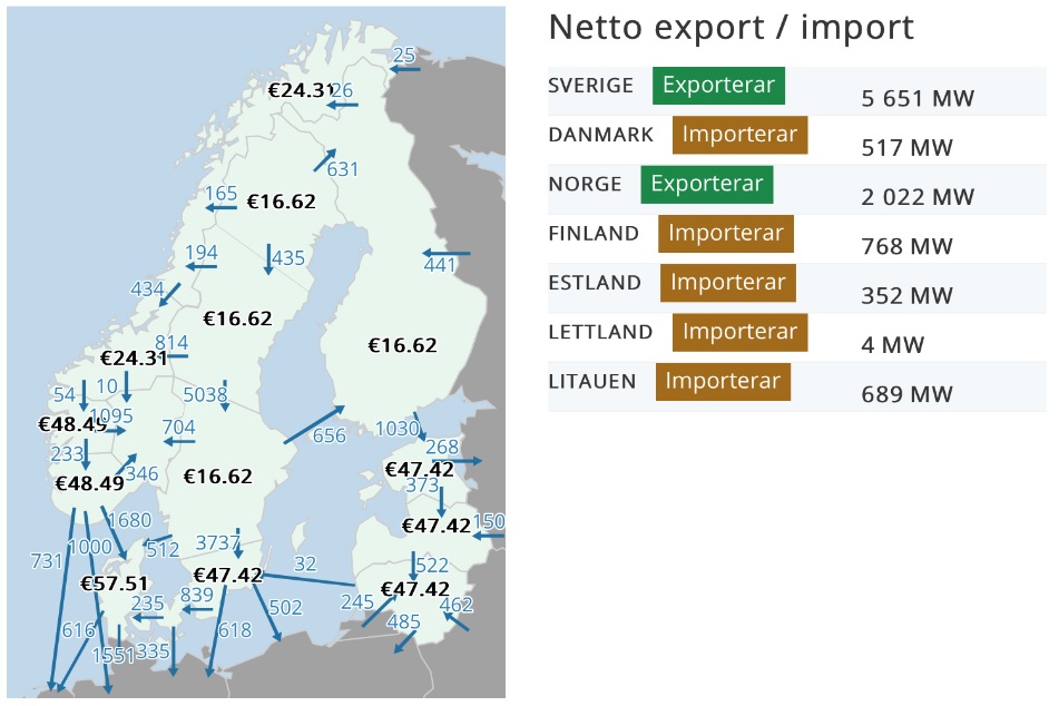 Enligt Svenska kraftnäts kontrollrummet så var priset inom SE4 (Skåne, Blekinge och stora delar av Småland och Halland) cirka tre gånger så högt som i övriga Sverige. Men det mest anmärkningsvärda var att samtidigt exporterades 5 651 MW från Sverige, varav närmare 2 000 MW från SE4 till Danmark, Tyskland och Polen.