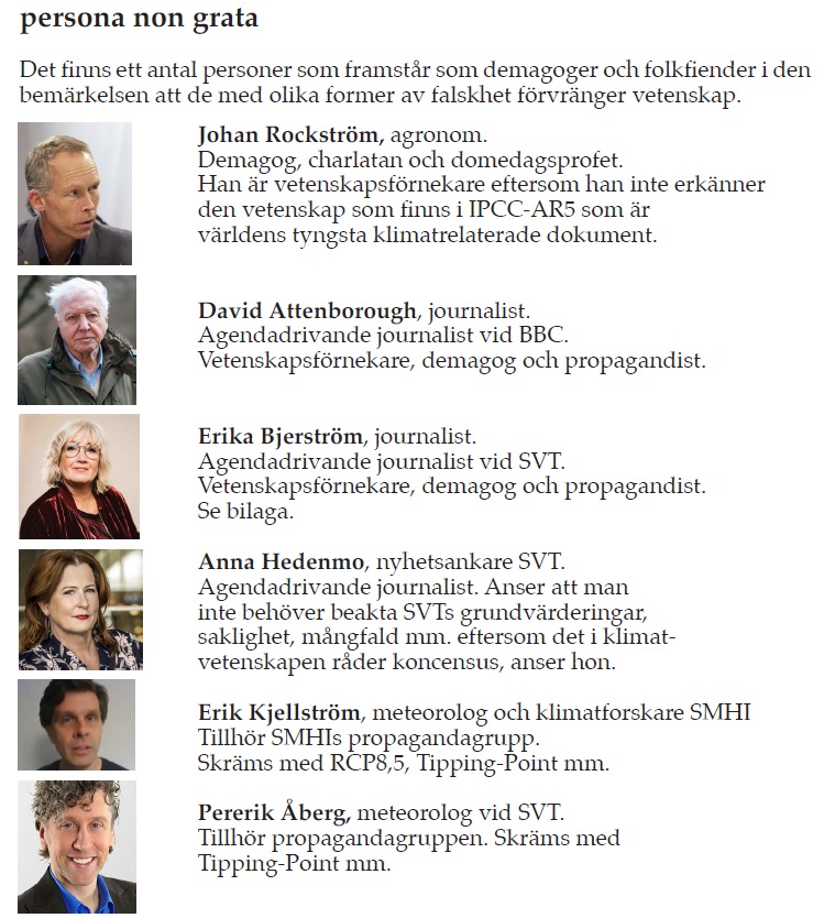 Invandringen till Sverige och klimatalarmismen i SVT är också två ämnen där SVT aldrig berättar sanningen eller låter kritiker komma till tals. I veckan fick jag ett mejl angående detta från en läsare av bloggen med lite information. Bland annat en sammanställning på några personer som sprider rena osanningar. Jag delar min läsares uppfattning om dessa personer. Två av dem är dessutom anställda av SVT.