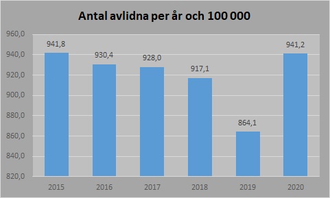 Ja precis, vad hände 2015? Varför var det fler som avled per år och 100 000 året 2015 när vi inte hade någon pandemi?