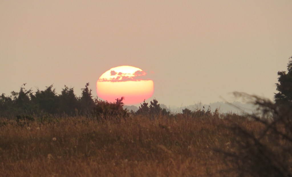 Därför gav jag mig iväg mitt i natten till sydöstra Öland och började min vandring strax före 03:00 från bilparkeringen vid Gösslunda. Under min vandring kunde jag betrakta ett fint skådespel över fastlandet där blixtarna avlöste varandra och man kunde höra åskan mullra dovt och ibland lite hotande. Men på Öland var det mer eller mindre vindstilla och jag kunde lyssna till sånglärkan, näktergalen, göken och nattskärran under min vandring. Det är inte ofta jag hört nattskärrans ”knarrande”.