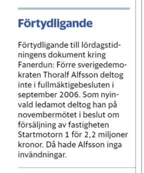 Idag är en rättelse införd i tidningen och därmed erkänner Barometern att man skrivit helt felaktigt i tidningen och sprungit Johan Perssons ärende.