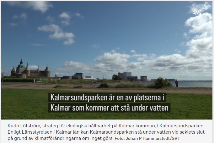 Man har filmat inslaget vid Kalmarsundsparken som ligger strax söder om Kalmar slott. I inslaget säger man att Kalmarsundsparken kommer stå under vatten. Läs artikel och se inslaget på följande länk.