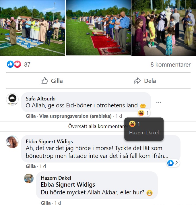 Det var Hazem Dakel som låg bakom reportaget om sunnimuslimernas stora bönemöte på Bergaviks idrottsplats. Inte en enda kritisk fråga ställdes i reportaget trots att polisen kom och att det saknades tillstånd för det stora religiösa mötet. Jag skrev om det i ett blogginlägg.