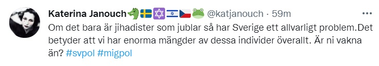 Efter de vittnesmål jag fått i Kalmar så finns det IS-sympatisörer i Kalmar och då finns det även islamister i Kalmar. Men det gäller säkert för alla lite större orter i Sverige och säkert även mindre orter också.