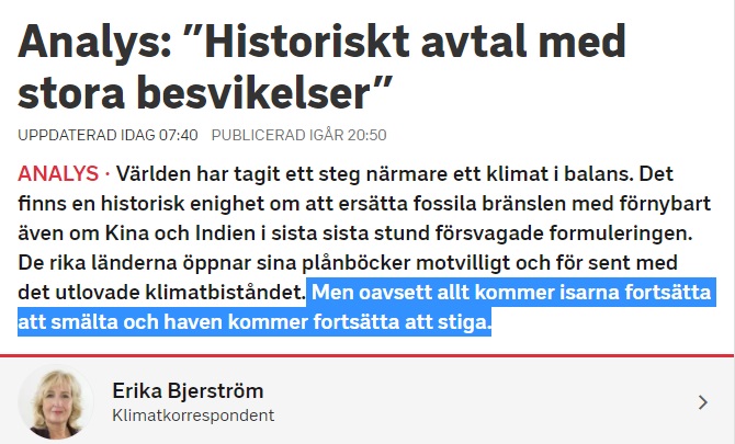 Sedan läser jag idag Erika Bjerströms analys av COP26. ”Haven kommer fortsätta att stiga”. Suck…..