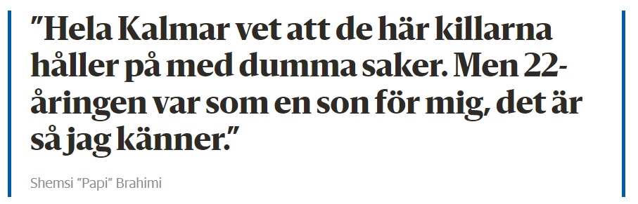 Jag hatar den här förminskningen av grov brottslighet. Shemsi ”papi” Brahimi kallar grov narkotikabrottslighet, som handlar om kilovis med amfetamin och kokain för ”dumma saker” i en artikel i Barometern. Han är anställd av Kalmar kommun och kommunalrådet Johan Perssons (S) sändebud i utanförskapsområdet Norrliden och nu kallar Papi grova narkotikabrott och en rad andra brott för ”dumma saker”.
