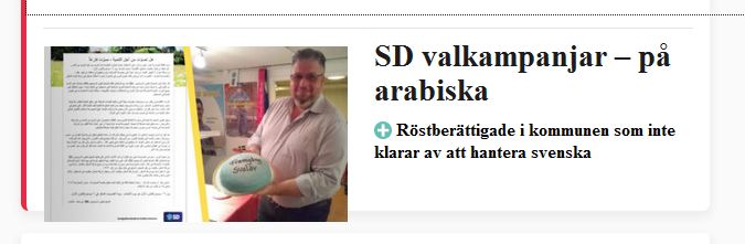 Undrar vad informationsbladet, på arabiska – som SD ska dela ut till muslimer och araber kommer att innehålla för politiskt budskap? Att de inte är svenskar, inte hör hemma i Sverige, nej till moskébyggen och böneutrop samt att Sverige är fullt och behöver återvandring?