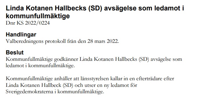 Men vid dagens möte i kommunfullmäktige hade SD bytt fot och yrkade helt plötsligt avslag på denna höjning av kommunalrådens arvoden. Jag tar mig för pannan och undrar vad det är förvirrpannor som styr inom SD. Flera ledamöter raljerade över Sverigedemokraternas omsvängning. Micael Foghagen skyllde bland annat omsvängning på pandemin och Rysslands anfallskrig mot Ukraina.