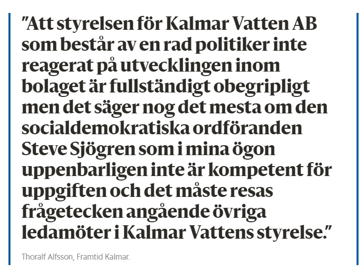 ”Efter en och en halv timmes interpellationer med en rad debatter som följd har Olle Tingström bland annat fått lyssna till diskussioner om klimatnödläge i Kalmar, satsningen på mensskydd i skolor, inköpt tält, läromedel, trygghetsfrågan och Kifab-affären. Den sistnämnda debatten blev bitvis tuff mellan kommunstyrelsens ordförande Johan Persson (S) och Thoralf Alfsson, som i kommunfullmäktige är politisk vilde. Alfsson pratade om maktfullkomlighet och kallade Perssons agerande för häpnadsväckande. Johan Persson svarade med att Alfsson måste ha sovit under informationen och att det bara handlar om konspirationsteorier.