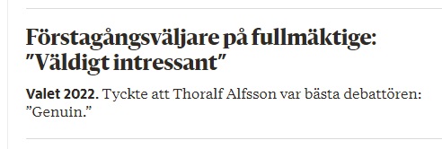 Här har alltså en förstagångsväljare besökt ett kommunfullmäktigemöte för första gången i sitt liv och han värderade min debatt med Johan Persson som den mest intressantaste.