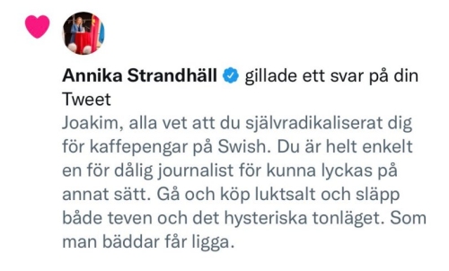 Man väl knappast kalla Annika Strandhäll för swishhora?