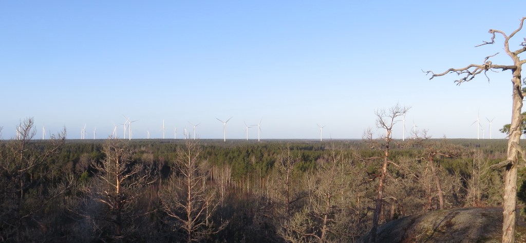 Vindkraftsparken i Mönsterås, på bilden syns ca 25 av 36 vindkraftverk. Foto Thoralf Alfsson