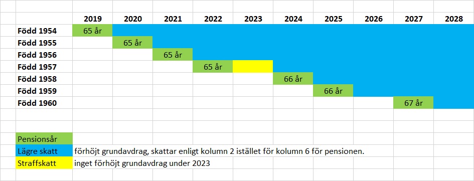 Frågan är om de som är födda 1959 kommer drabbas av samma effekt som oss födda 1957, då pensionsåldern höjs för de födda 1960 till 67 år. Jag gissar att regering och riksdag även missat den konsekvensen. Det skall bli intressant att få svaret från pensionsmyndigheten.