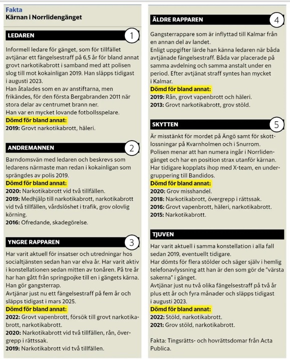 När Barometern för några månader sedan skrev om Norrlidengänget så hade tidningen hittat på alias för de styrande i Norrlidsgänget. De var ledaren, andremannen, yngre rapparen, äldre rapparen, skytten och tjuven.