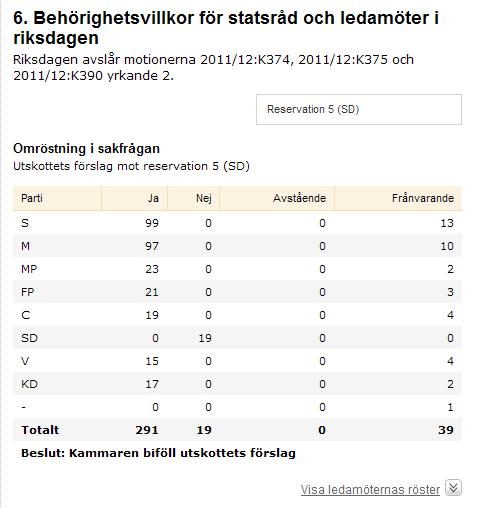 Det var alltså bara SD:s ledamöter som röstade för motionen.