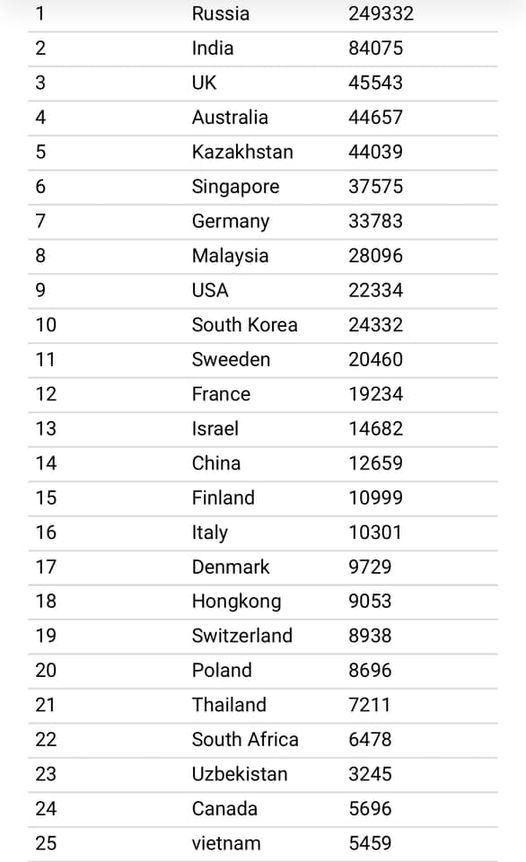 Jag är i Sri Lanka. Här är det samma fördelning av turisterna med 25 % ryssar och sedan följer indier.