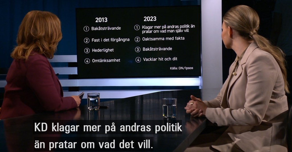 Sedan kom slutklämmen när Anna Hedenmo menade att KD inte längre var hederliga, utan oaktsamma med fakta o.s.v. Jag tycker precis tvärt om. Är det någon som är ohederlig och oaktsam med fakta så är det Anna Hedenmo och public service.