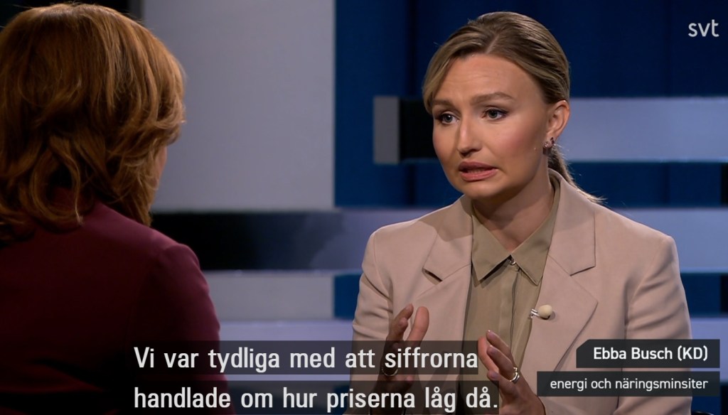 Ebba Busch refererar då till de priser som var under sommaren 2022.
