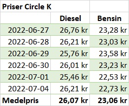 Jag har kollat statistik från Circle K och så här såg det ut i månadsskiftet juni/juli.