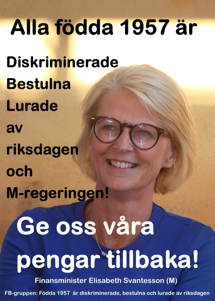 Det är dags att finansminister Elisabeth Svantesson bekänner färg. Står Moderaterna bakom denna skandalösa skattehöjning och straffbeskattning av pensionärer födda 1957.