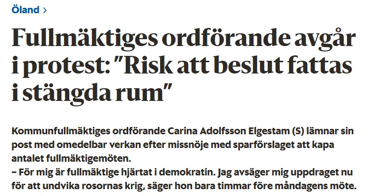 Nu vill denna sekt skära ned på antalet möten i kommunfullmäktige för att spara pengar men sektens egna ordförande i kommunfullmäktige Carina Adolfsson Elgestam (S) är minst sagt upprörd.