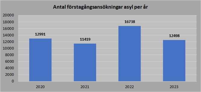 En relativt konstant utvecklingen. Ökningen under 2022 kan hänföras till i huvudsak asylsökande från Ukraina och sannolikt ett uppdämt asylsökande efter pandemin. Det går ännu inte se någon effekt av den nya regeringens paradigmskifte migrationsområdet på årsbasis.