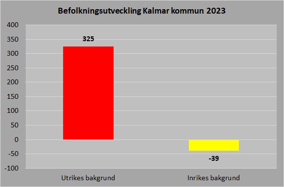 Personer med utrikes bakgrund har alltså ökat med 325 personer medan personer med svensk bakgrund minskat med -39 under 2023.