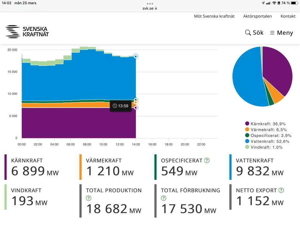 Dagens bild över energiproduktionen borde väl även vindkraftshetsarna förstå! Vindkraft står för 1 procent av elproduktionen.