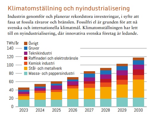 Under 2023 var elförbrukning i svensk industri ca 45 TWh och till 2030 förväntas den till närmare 120 TWh.