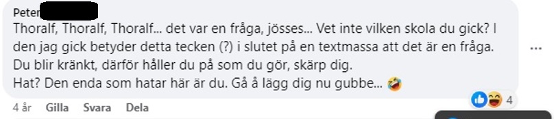 Här kommer några exempel på vad personen skrev under eget namn för 4-5 år sedan. Vad tror ni då samma person kan skriva anonymt?