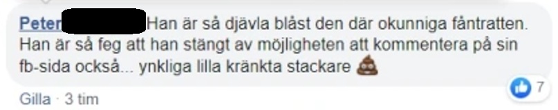 ”Peter” och andra som skriver på ett sådant sjukt sätt avslöjar sig själv att det inte står rätt till med deras hjärnceller. Sannolikt lider dessa personer av okunskap, avundsjuka och att de själva inte räcker till att leva som en normal människa.