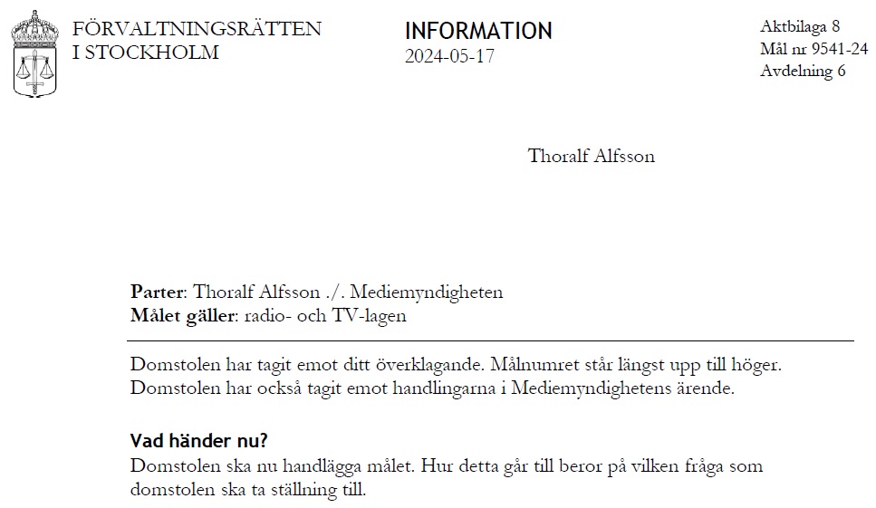 Men nu måste i varje fall Förvaltningsrätten ta ställning till om det är rätt juridiskt att fyra före detta arbetskamrater till Erika Bjerström på SVT och Dagens Nyheter beslutar i ett ärende i Granskningsnämnden som berör Erika Bjerström!