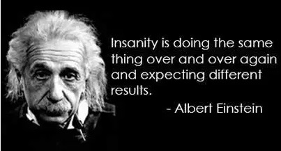 Albert Einstein lär ha konstaterat att galenskap är att göra samma sak om och om igen och förvänta sig olika resultat.