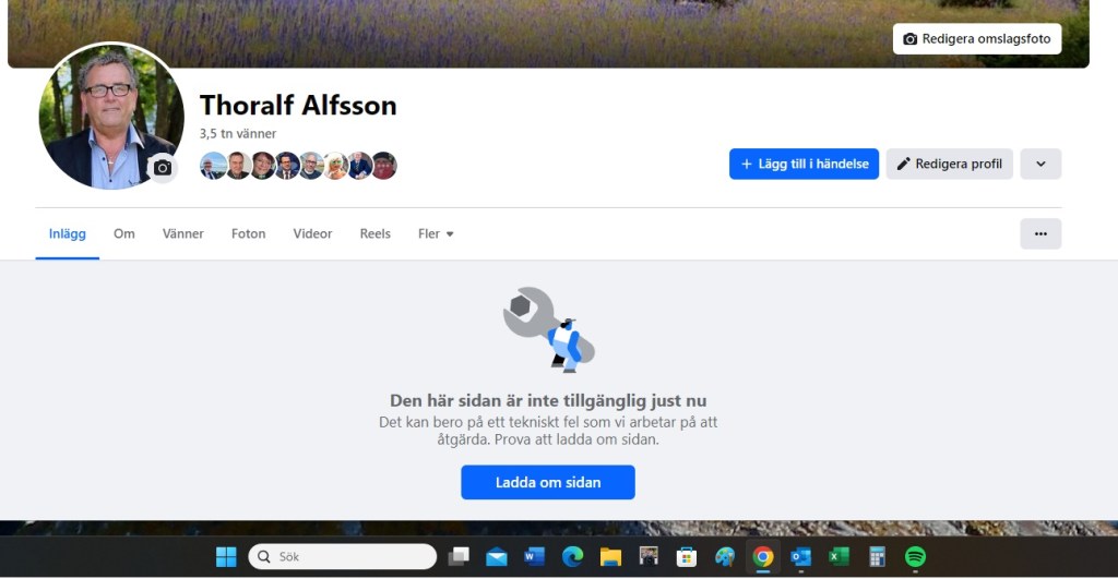 Jag kan alltså gå in och se flödet på vad andra lagt upp men jag kan inte se min egen Facebooksida.