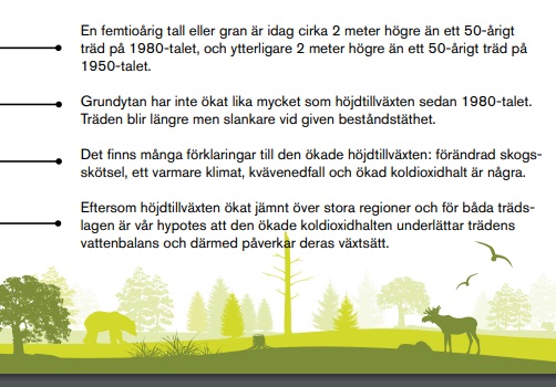 Bara några månader tidigare släppte andra forskare på Sveriges Lantbruksuniversitet, SLU en rapport om hur tillväxten i de svenska skogarna har ökat de senaste ett hundra åren och i synnerhet de senaste decennierna sedan 80-talet. Rapporten är alltså från 2024 och har nedanstående rubrik.