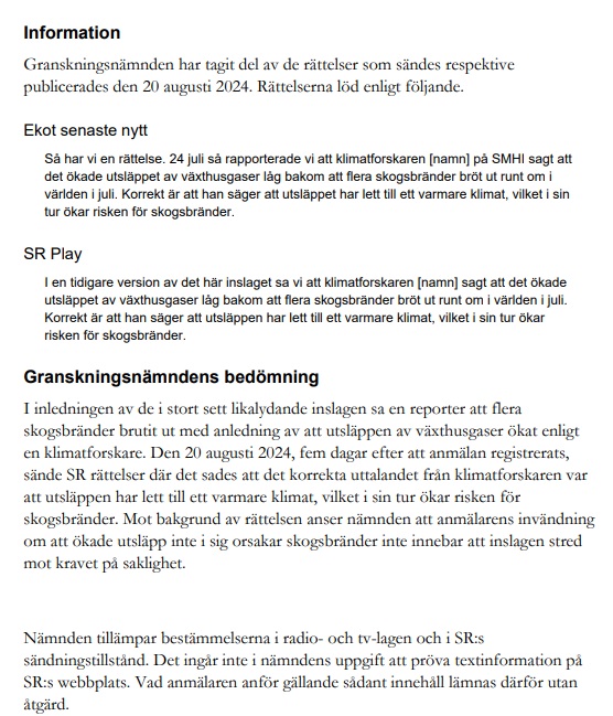 Därför valde jag då att anmäla nyhetsinslaget till Granskningsnämnden då jag är allergisk mot vilseledande klimatalarmismen som public service regelbundet brukare lura sina lyssnare med.