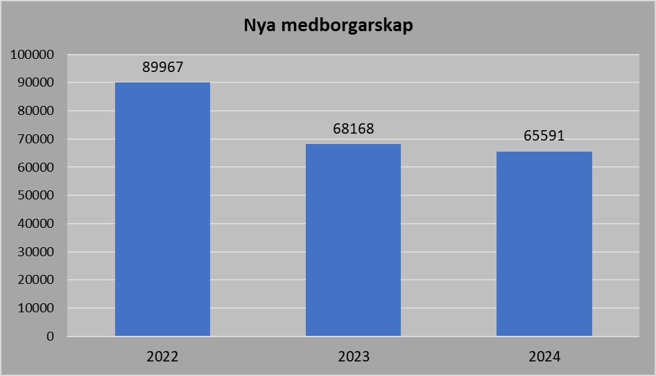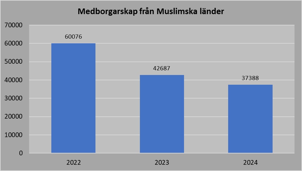 Under 2022 var alltså ca 67 procent av de som fick medborgarskap från något muslimskt land. Under 2023 sjönk den andelen till 63 procent och under 2024 sjönk den ned till 57 procent. Men det är fortfarande mer än hälften av alla nya medborgarskap under 2024.