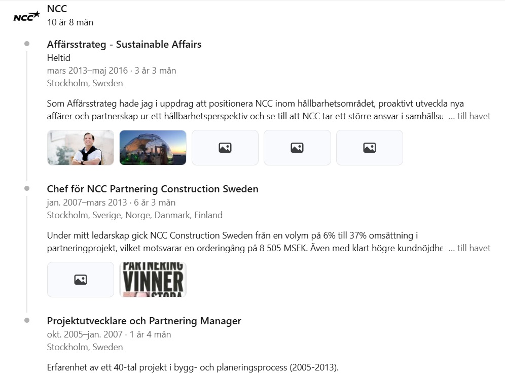 Thomas Bergfeldt hade alltså jobbat inom NCC i närmare 11 år. Från 2005 till 2016. Nog är det en intressant uppgift.