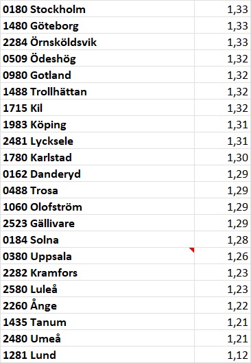 Vilka kommuner hamnar då i botten?