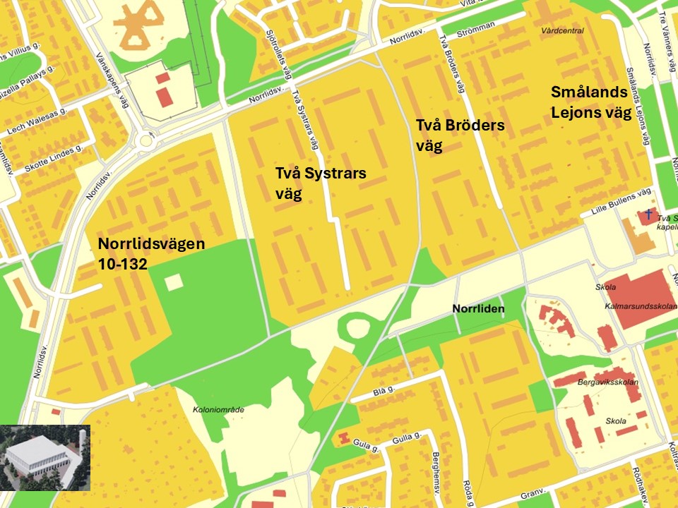 För den som inte känner till området Norrliden så har jag även gjort en karta med placering av moskén inlagd.