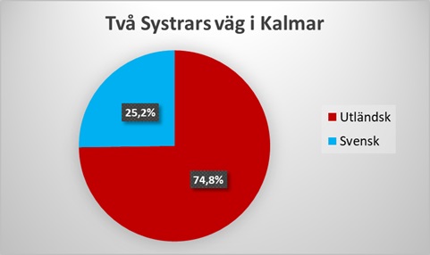 Jag har kollat boende på följande adresser Norrlidsvägen 10-132, Två Systrars väg, Två Bröders väg och Smålands Lejons väg. Det som finns i Folkbokföringen som är tillgängligt på nätet är alla som är 16 år eller äldre. Jag har utgått från deras namn. Det vill säga svensk/nordisk klingande namn i en grupp och utländska namn i en annan grupp.
