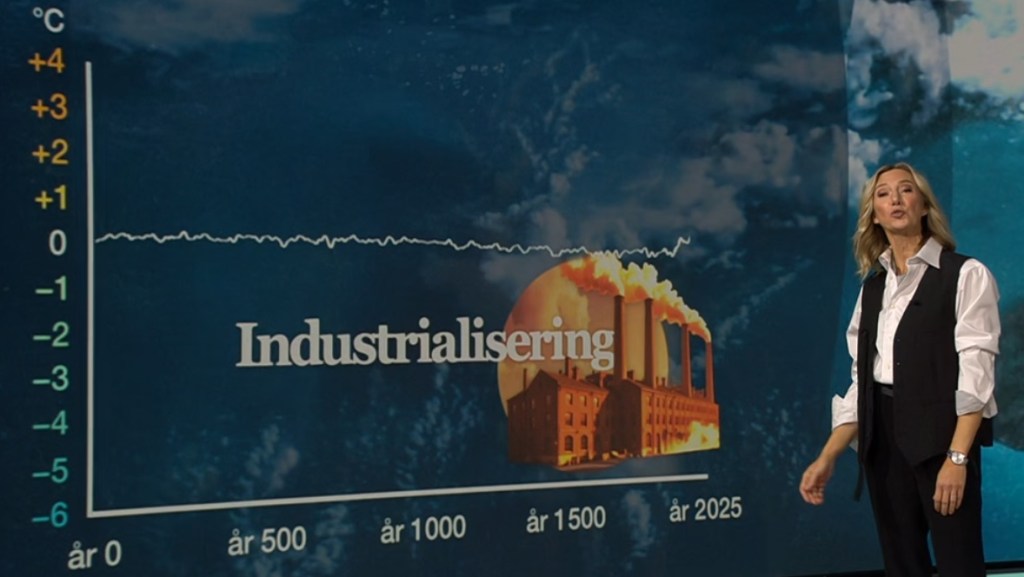 SVT valde en temperatur skala på hela 10 grader, från -6 till +4 grader. Vilket gjorde att inga temperaturförändringar kunde ses. utan kurvan såg stabil ut. Men var fanns toppen för ca 1000 år sedan när Grönland var bebott och det odlas mycket på Grönland eller var fanns lilla istiden på 1600-talet.