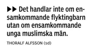 Första riktigt heta kommunfullmäktige blev istället den 27 november då ett ärende om att ta emot åtta så kallade ensamkommande barn, kom upp på dagordningen. Det blev premiär i talarstolen. Jag kritiserade förslaget för att det inte fanns någon ekonomisk redovisning eller budget för kostnaderna för kommunens åtagande. Jag menade också att det handlade inte om barn, utan om unga muslimska män i de flesta fall. Som dessutom är utsända för att fungera som ankarbarn för att övriga i familjen sedan skall kunna komma efter som anhöriginvandrare. Jag yrkade på en återremiss av ärendet så att det kunde kompletteras med en ekonomisk kalkyl och om ärendet ändå skulle avgöras idag så yrkade jag avslag på förslaget till beslut.